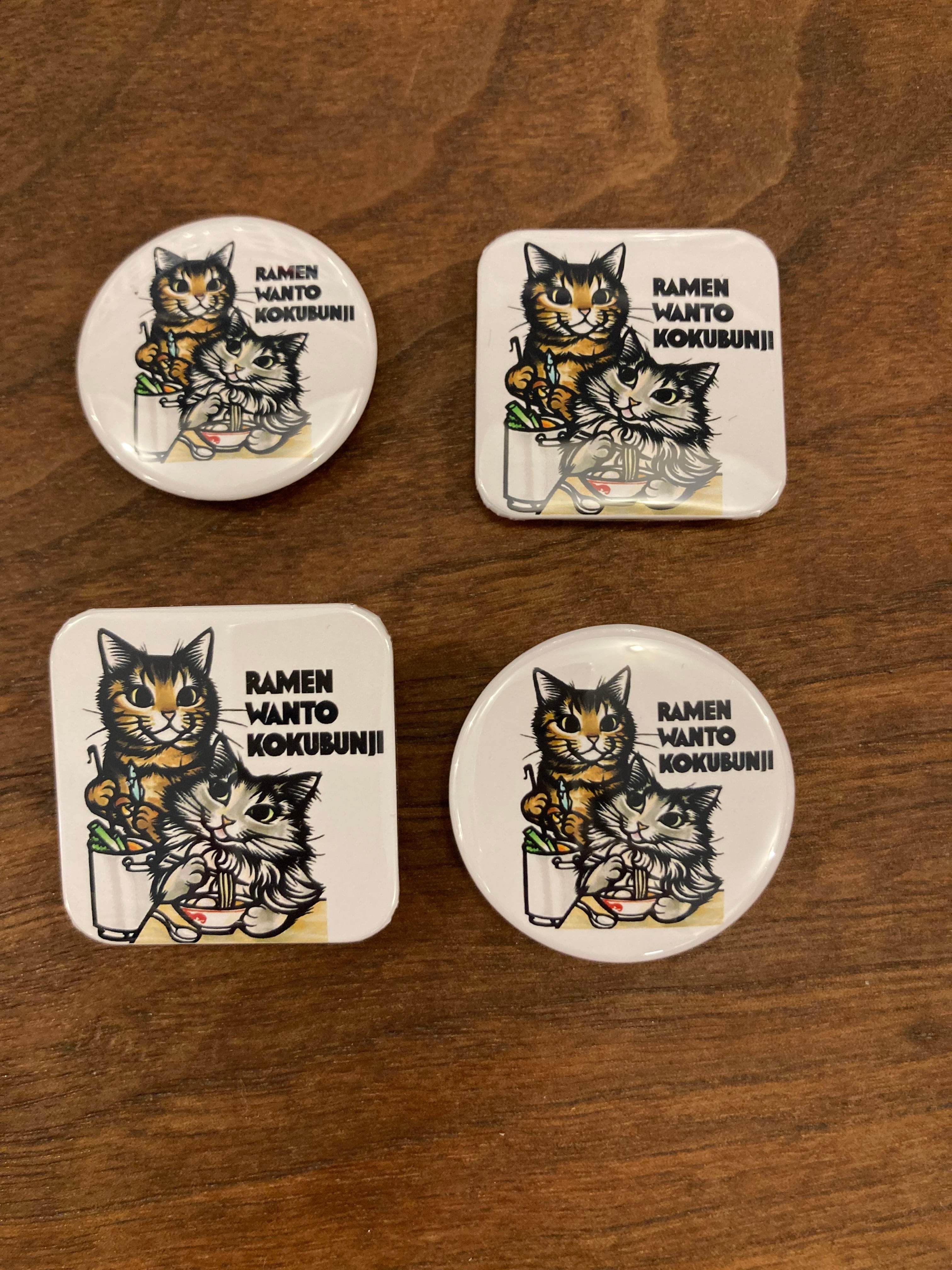 缶バッジ、マグネットどちらも丸型と四角の2タイプ